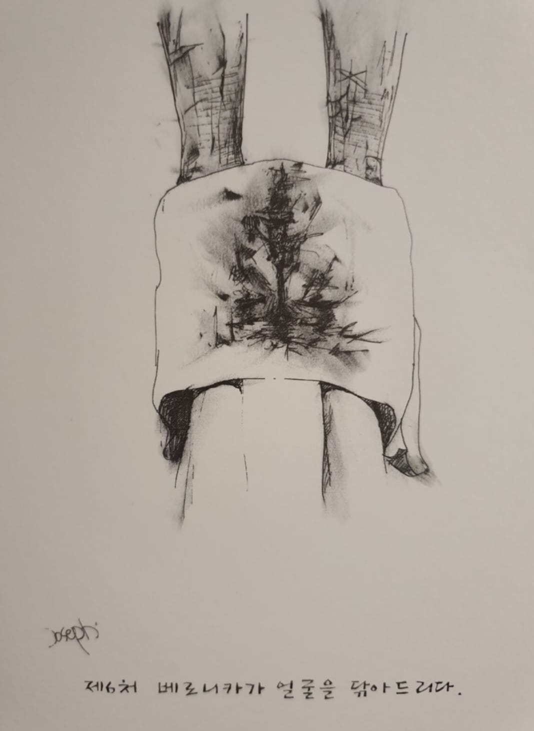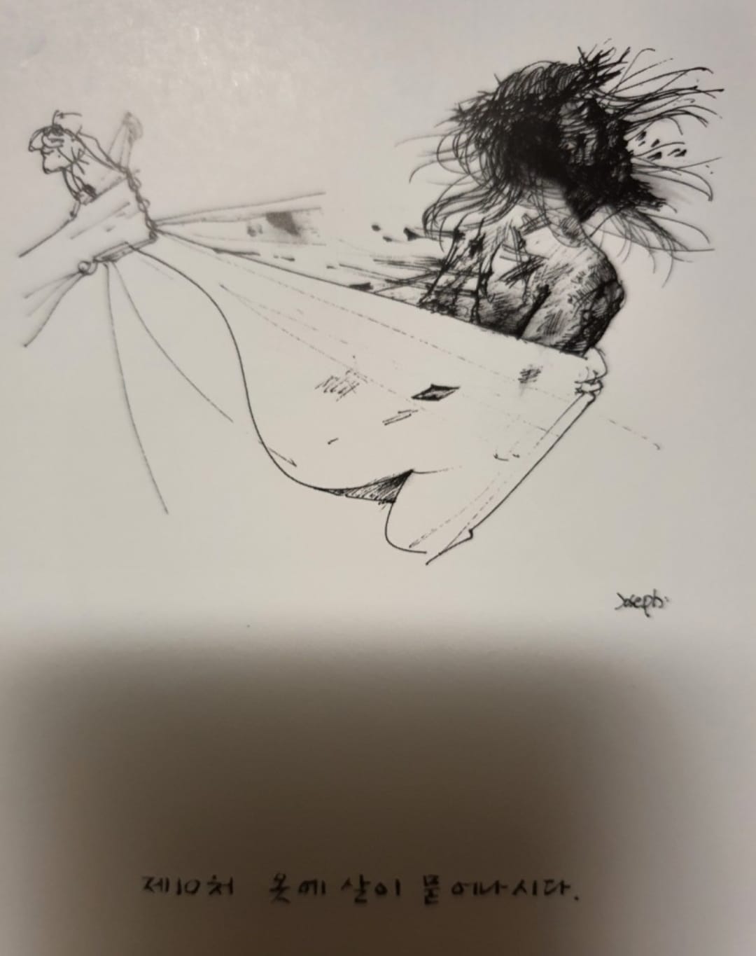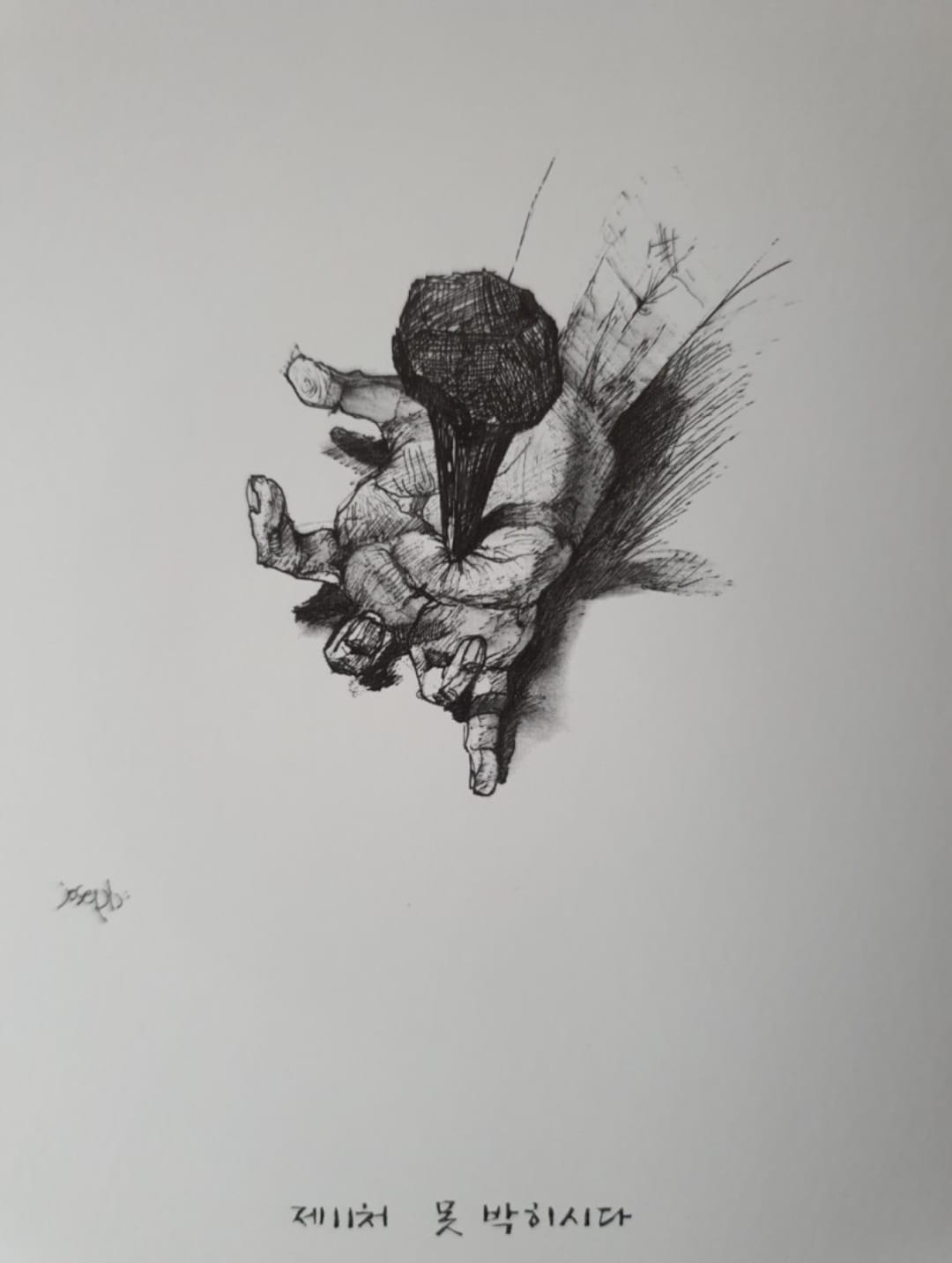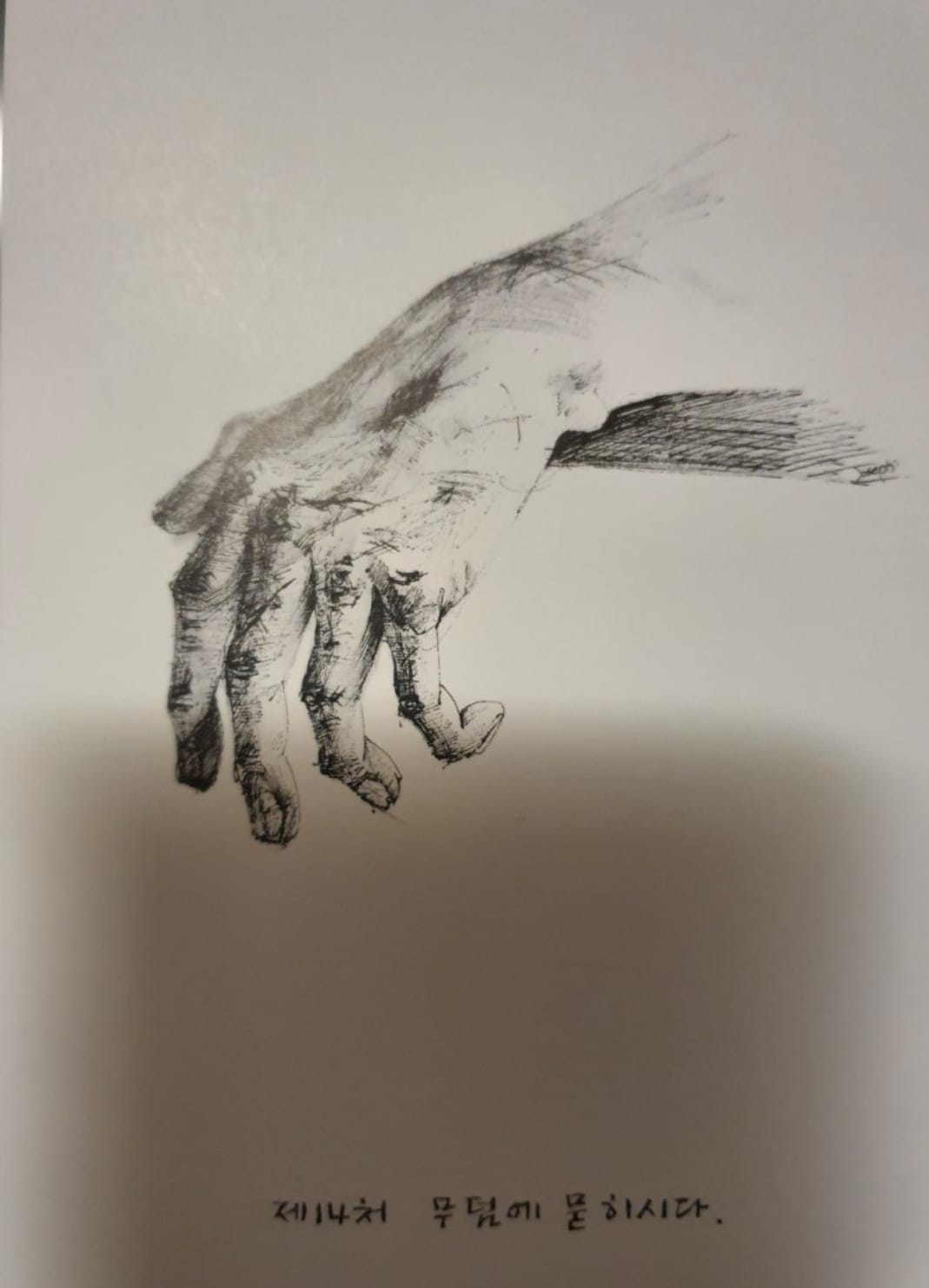 보통 성당의 십자가의 길이 부조인데 이곳은 흰종이에 검정색 펜으로 그린 그림이다.