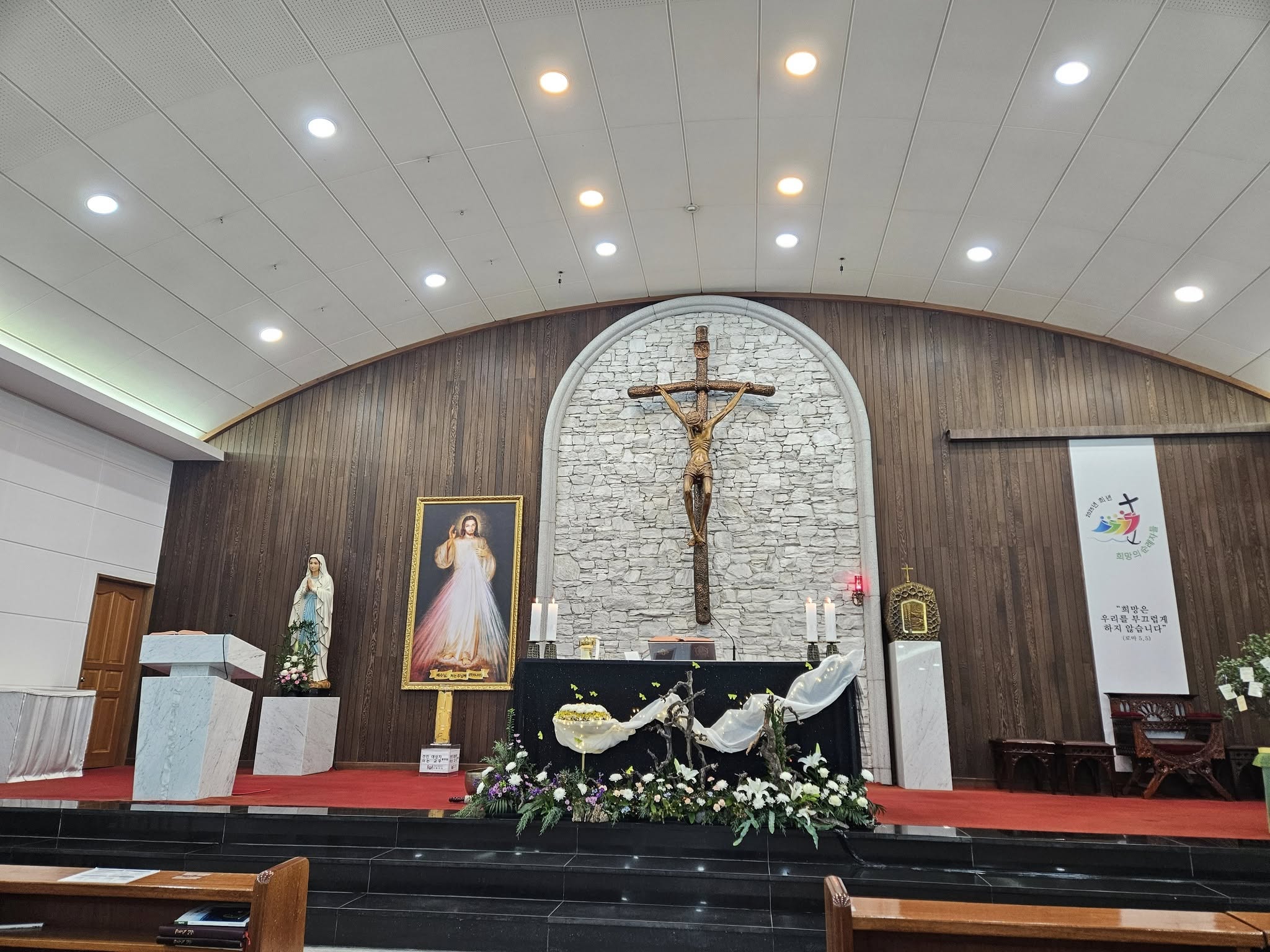 평신도 주일에는 강론을 신부님이 아닌 평신도에게 맡기는 전통에 따라 오늘 강론을 본당에서 사목위원으로 활동하시는 분이 하셨다. 차분한 목소리로 프란치스코 교황님의 강론을 인용하며 참된 신자의 모습에 대해 이야기하셨다. 겉보기에 성당에 열심히 나오는 것만으로 참된 신자가 아니고 예수님을 진심으로 따르고 행동으로 드러내야한다고 하시며 교회 공동체 안에서 자신을 기꺼이 희생하며 가난하고 소외된 이웃을 위해 봉사하고 희생하는 신자가 되자고 권하셨다. 예수님을 믿는다는 것은 예수님처럼 생각하고 예수님처럼 행동하겠다는 것이 핵심이지만 그렇게 살기가 참으로 어렵고 힘들다. 참된 신앙을 같는다는 것은 말처럼 쉽게 될 수 없는 일이다. 끊임없이 고뇌하고 반성하고 회개하고 기도하며 행동으로 증명해야하는 어렵고 고되며 외로운 일임에 틀림없다. 성경을 읽어보면 예수님께서 그렇게 사셨다는 것을 누구나 쉽게 알아챌 수 있다.