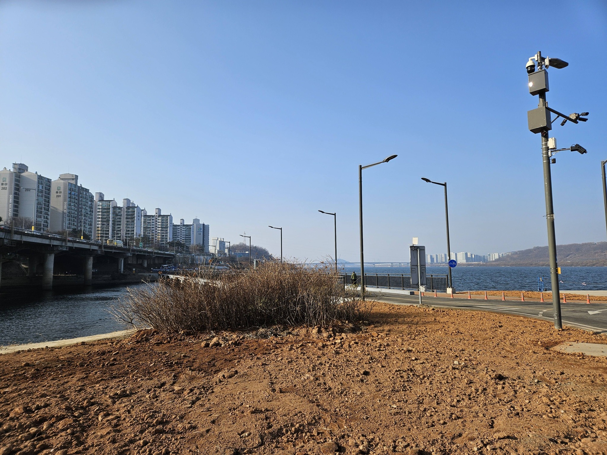 한강이 가까워올수록 바람이 점점 강해졌다. 강바람이라는 말을 실감할 정도로 차가운 바람이 정신이 번쩍 들도록 얼굴에 부딪쳤다. 그러나 젊음은 어디서든 그 활력을 드러낸다. 한강런이라더니 한강이 가까워 올수록, 한강에 다다러서는 수많은 젊은이들이 겨울 추위를 아랑곳하지 않고 무리지어 혹은 홀로 뛰어다니고 있었다. 합수부를 지난 한강변에는 이 겨울에 온통 뛰고 자전거타는 사람들, 아니 젊은이들로 북적였다. 탁트인 한강변을 젊은이들 속에서 걷는 것은 추위에도 불구하고 또 다른 낭만이 있었다. 오른쪽 강건너에는 쓰레기 매립지에서 새롭게 태어난 난지도가 보였다. 저곳에도 한 번 가봐야할텐데 기회가 되질 않았다. 쓰레기 매립이 끝나고 새롭게 태어난 난지도는 이름처럼 변해 있을까가 몹시 궁금했다.