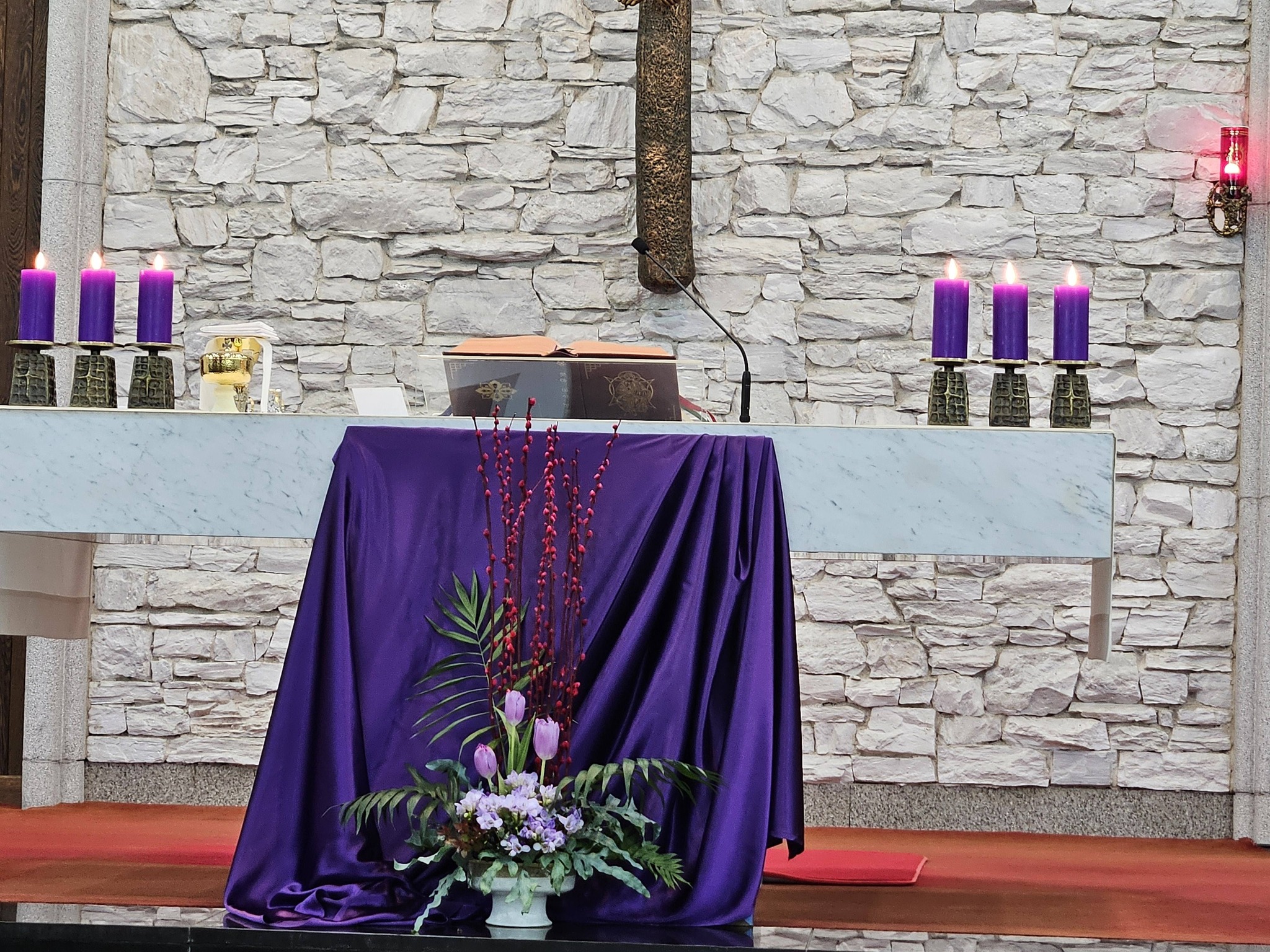 날이 많이 풀렸다. 오늘 아침은 자전거를 타고 성당으로 향했다 거리는 조금 밝아졌지만 여전히 오가는 사람들은 거의 없었고 지나다니는 차는 한산했다. 날이 조금 풀려서인지 아니면 사순절 첫 미사여서 인지 성당 안에 새벽 미사에 참석하는 신자들의 수는 조금 늘어난 것 같았다. 제대 위의 초 색깔과 신부님 제의가 보라색이었다. 예수님의 수난을 생각하며 참회와 보속, 그리고 간절한 기다림을 나타내는 것 이리라.